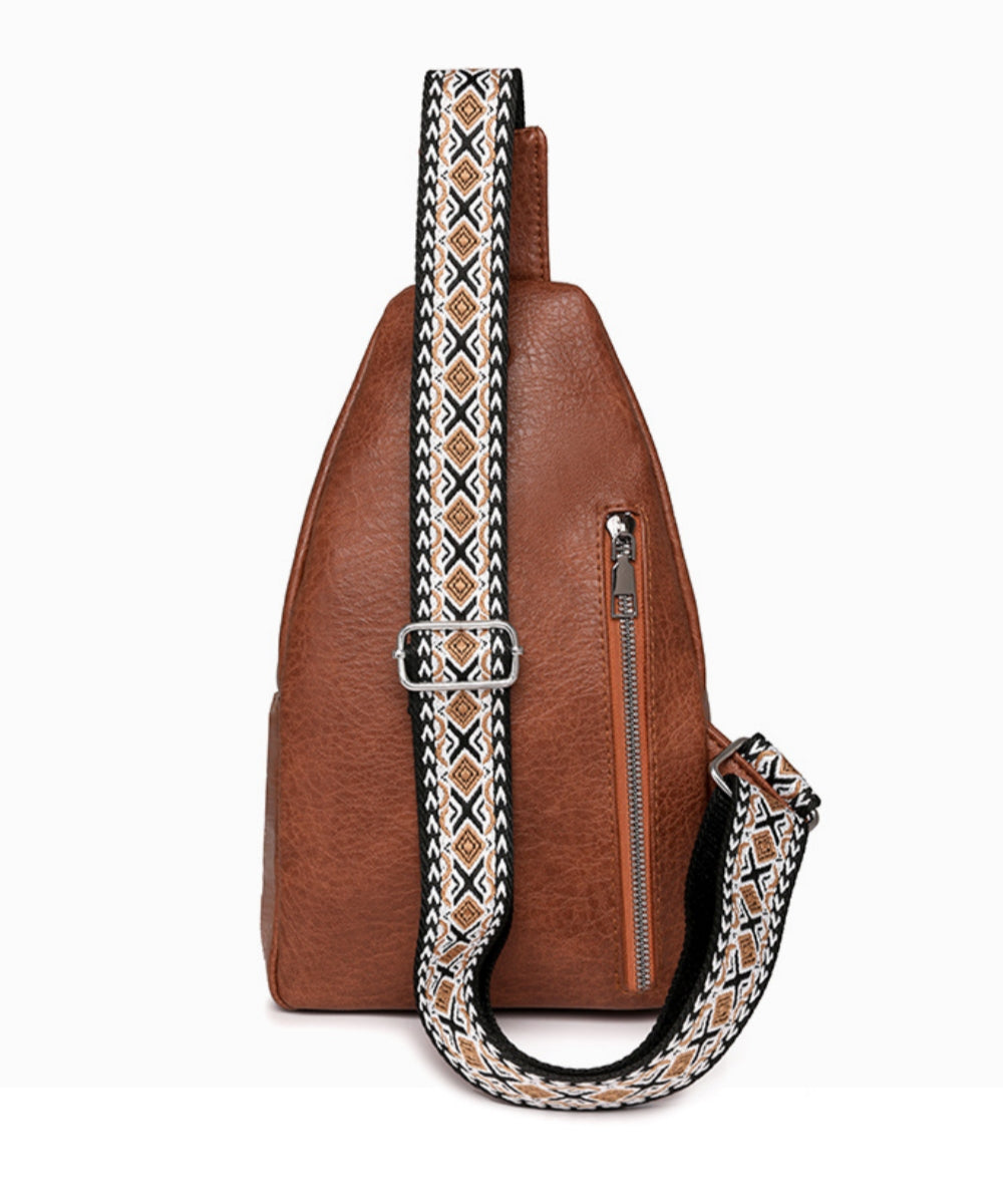 Soft faux leather Crossbody Sling Pursewith 2 main compartments, Top zipper closureBack zipper pocketSize: ( L)7" (H) 11" (W) 3.2"