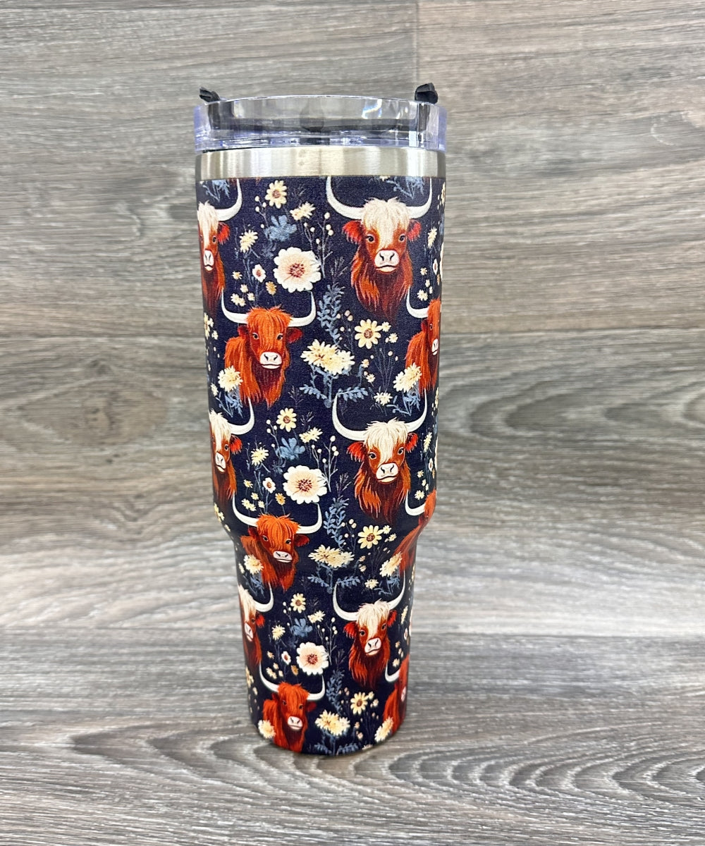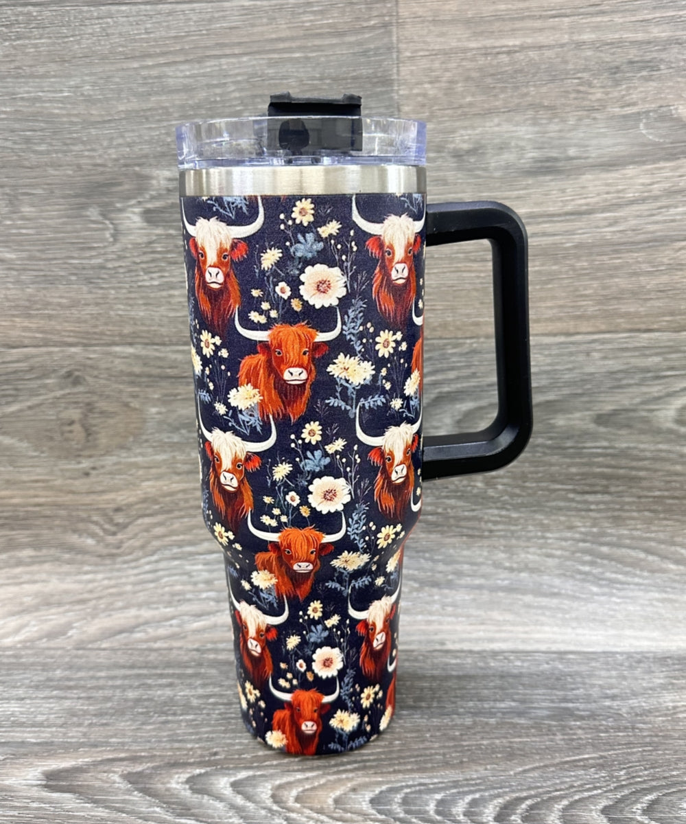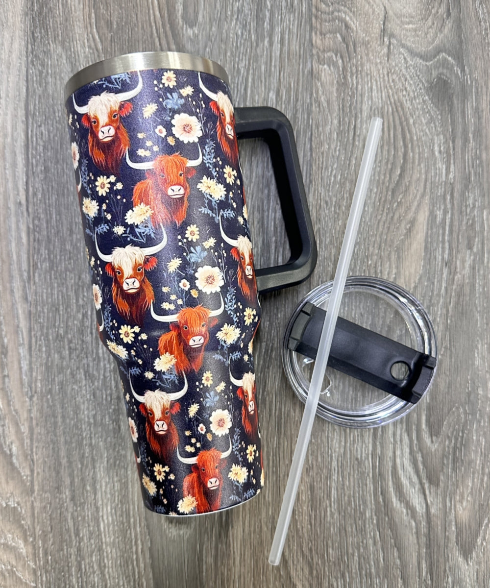 40oz, Western insulated water cup with straw and Handle