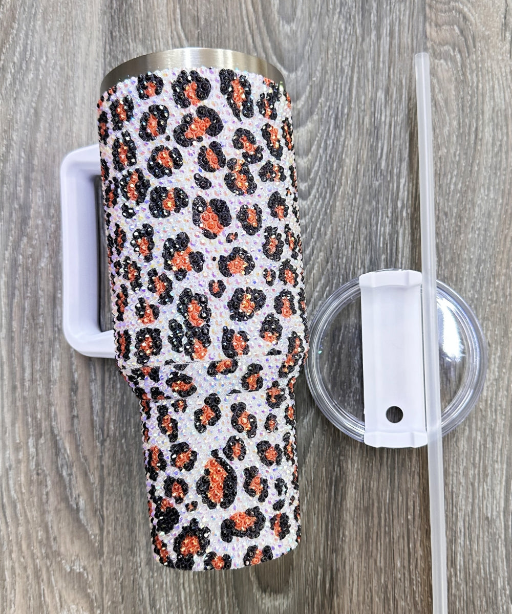 2667 LEOPARD RHINESTONE INSULATED TUMBLERS 40oz