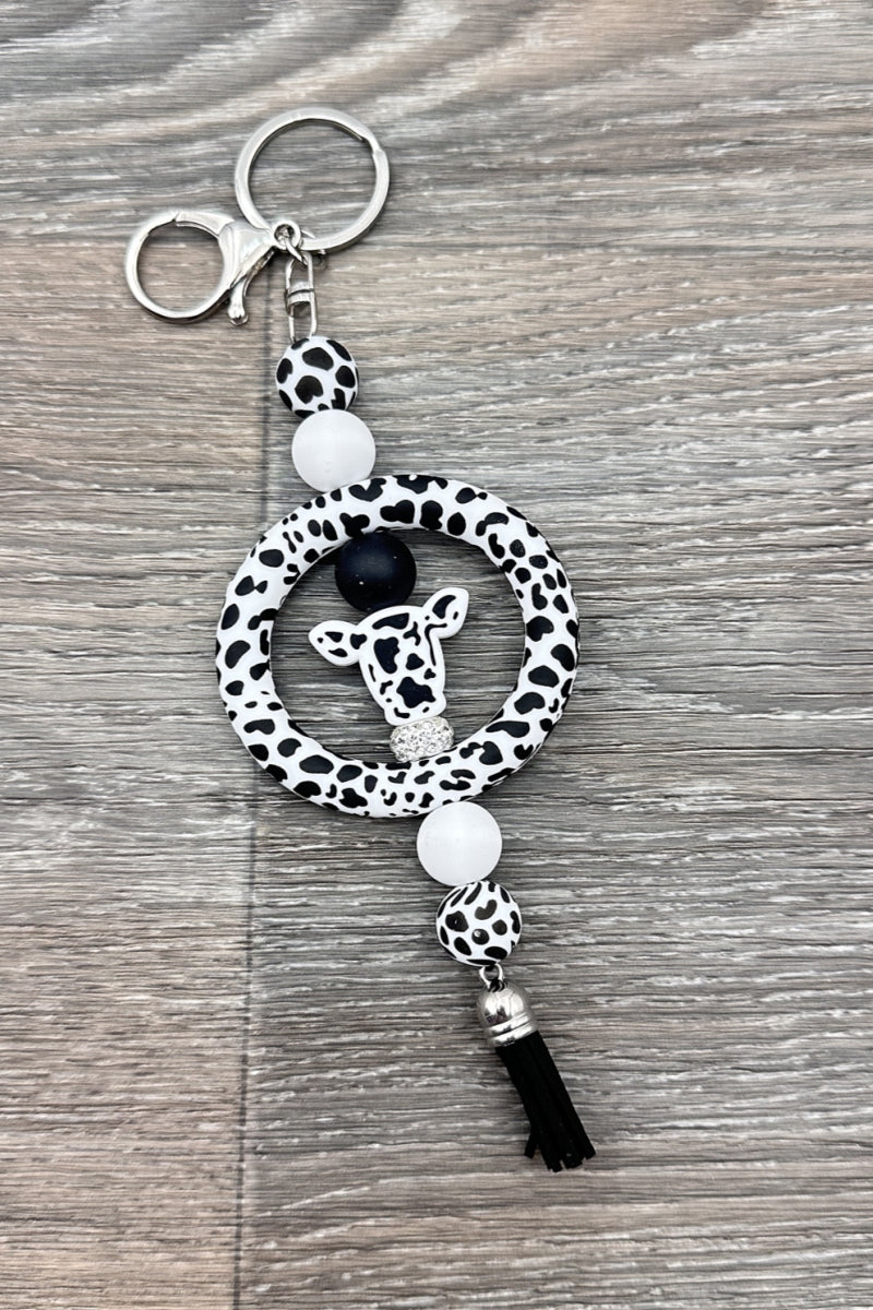 Western cow silicone beads keychainwith rhinestone, tassel Size: 3.5" x 8"